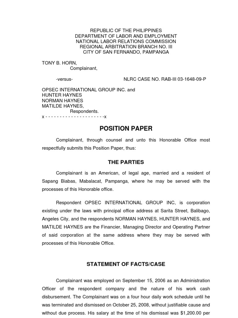 Position Paper Sample Philippines : Jollibee Research Paper Essay Example : I'll show you what resources you can use to research, how to write a thesis, and what to.. Naturally, it's important to make that impression as strong as possible. With reference to sample position paper a (bottom of the post), we can analyze these different parts and comment on the relative successes of the position paper leaves the committee chair with a first impression of your delegation. Policy regarding the situation in the balkans has been flawed from the start. Republic of the philippines department of labor and employment national labor relations commission regional arbitration branch no<b> iii cit! The complainants report hlurb position paper sample.